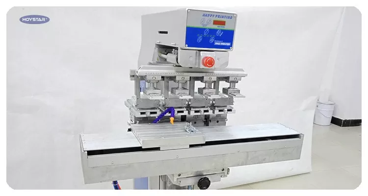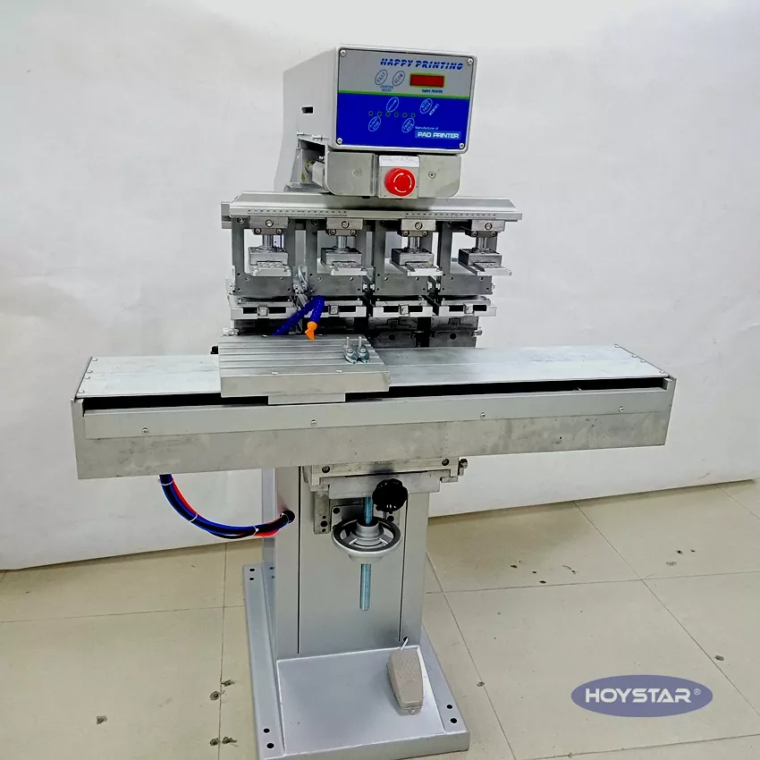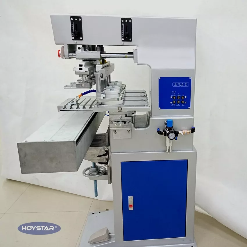 Là nhà sản xuất chuyên nghiệp tại Trung Quốc, chúng tôi muốn cung cấp cho bạn Máy in Pad 4 màu HOYSTAR hiệu quả cao có bàn làm việc con thoi để che. Máy của chúng tôi sử dụng PLC và điều khiển màn hình cảm ứng và phù hợp để in các sản phẩm khác nhau. Máy có giá cả cạnh tranh, kích thước nhỏ gọn và chất lượng in ổn định.