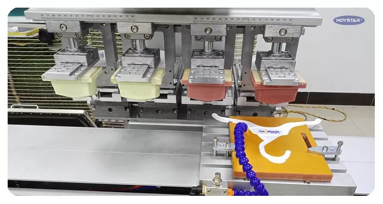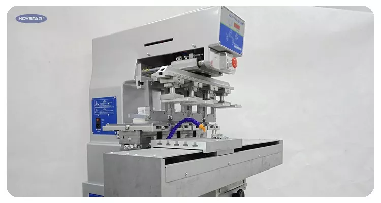 Máy in bảng màu HOYSTAR 4 màu có bàn làm việc con thoi có nắp này là một thiết bị in hiệu suất cao và tiết kiệm chi phí. Máy có khả năng điều chỉnh thuận tiện, hoạt động ổn định và hiệu quả in ấn tốt. Máy cho chất lượng in ổn định và phù hợp để in nhiều loại mặt hàng như sản phẩm điện tử, vỏ nhựa, sản phẩm phần cứng, văn phòng phẩm, đồ thủ công mỹ nghệ nhỏ cũng như các logo nhỏ trên bề mặt quà tặng, v.v. Có thể đáp ứng yêu cầu in ấn đa dạng của khách hàng.
