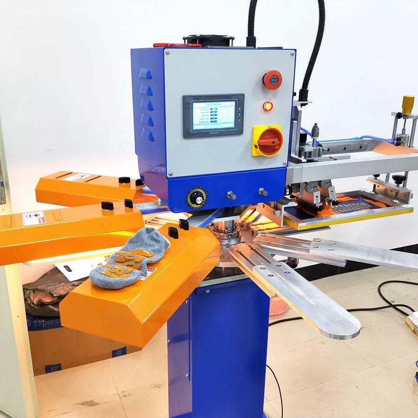 Máy in lụa cho tất chống trượt của chúng tôi được thiết kế dành cho các loại tất chống trượt chất lượng cao như tất trẻ em, tất dành cho thú cưng, tất người lớn, tất bóng đá, tất có độ bám. Thích hợp cho các nhà sản xuất chuyên về tất thể thao, y tế, trẻ em và yoga để mua để in.