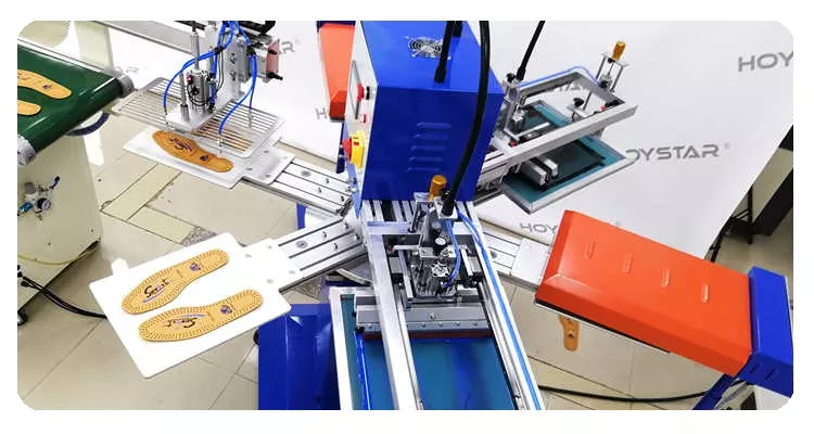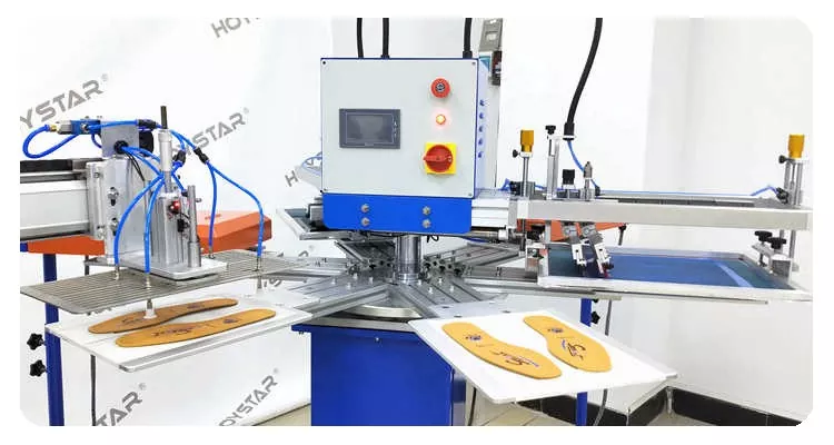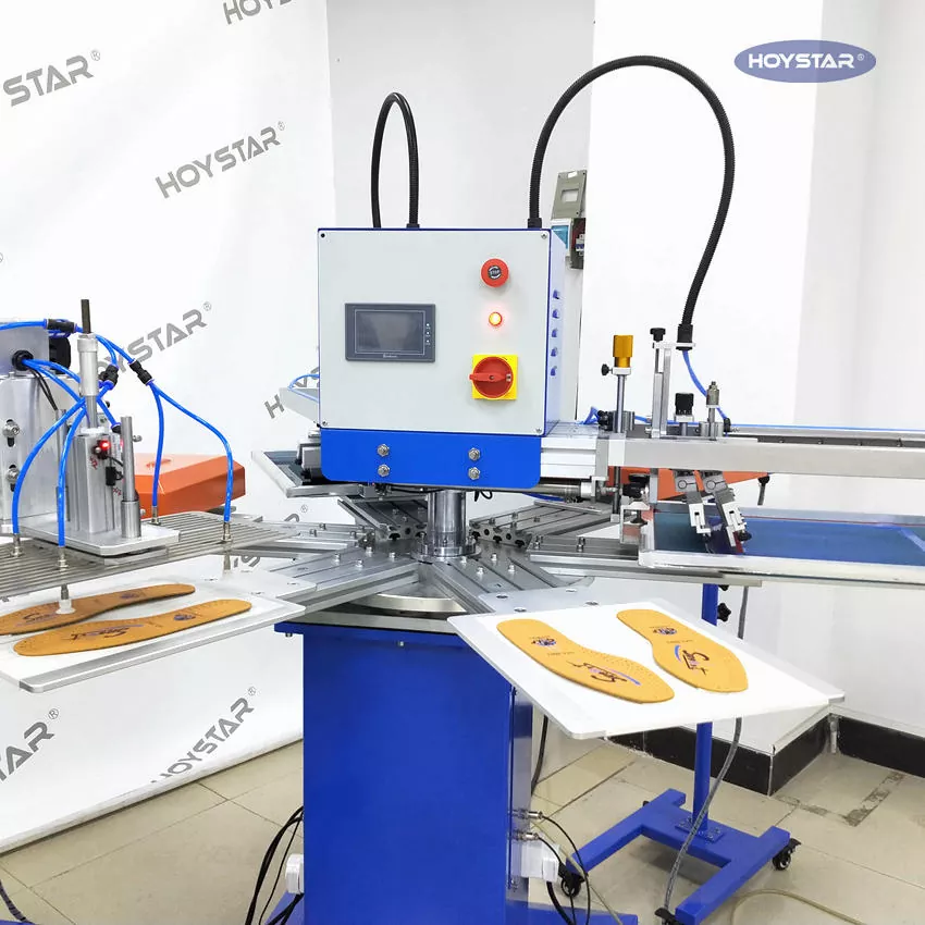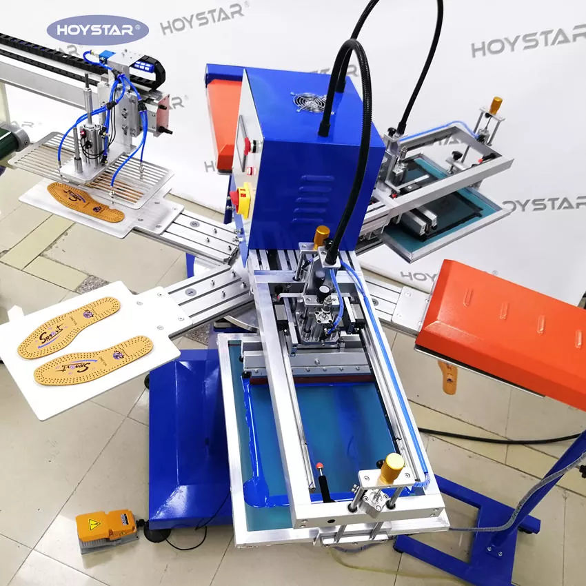 Là nhà sản xuất chuyên nghiệp tại Trung Quốc, chúng tôi muốn cung cấp cho bạn Máy in màn hình 2 màu tự động hiệu quả cao cho đế giày. Với công suất lên tới 1000 chiếc mỗi giờ, chiếc máy này được thiết kế để in không cần thẻ hoặc nhãn trên sản phẩm. Nó có bàn làm việc quay để tải và dỡ hàng thuận tiện.