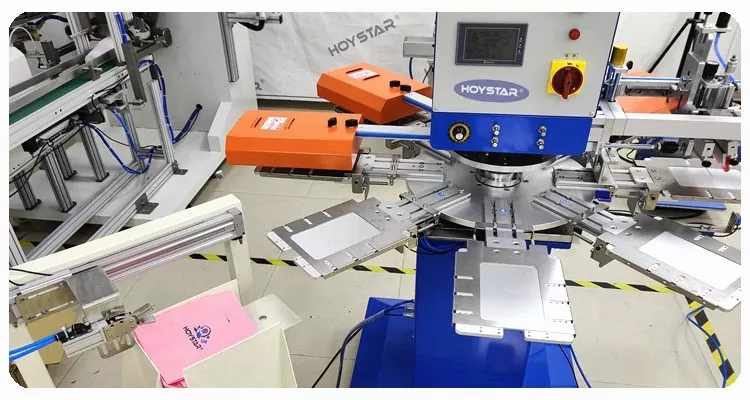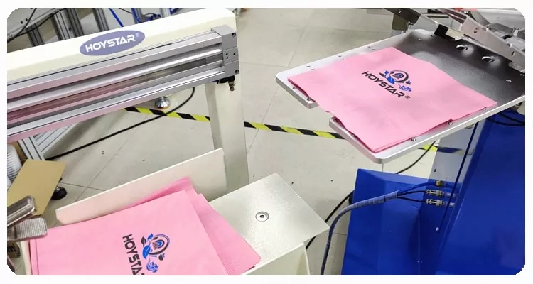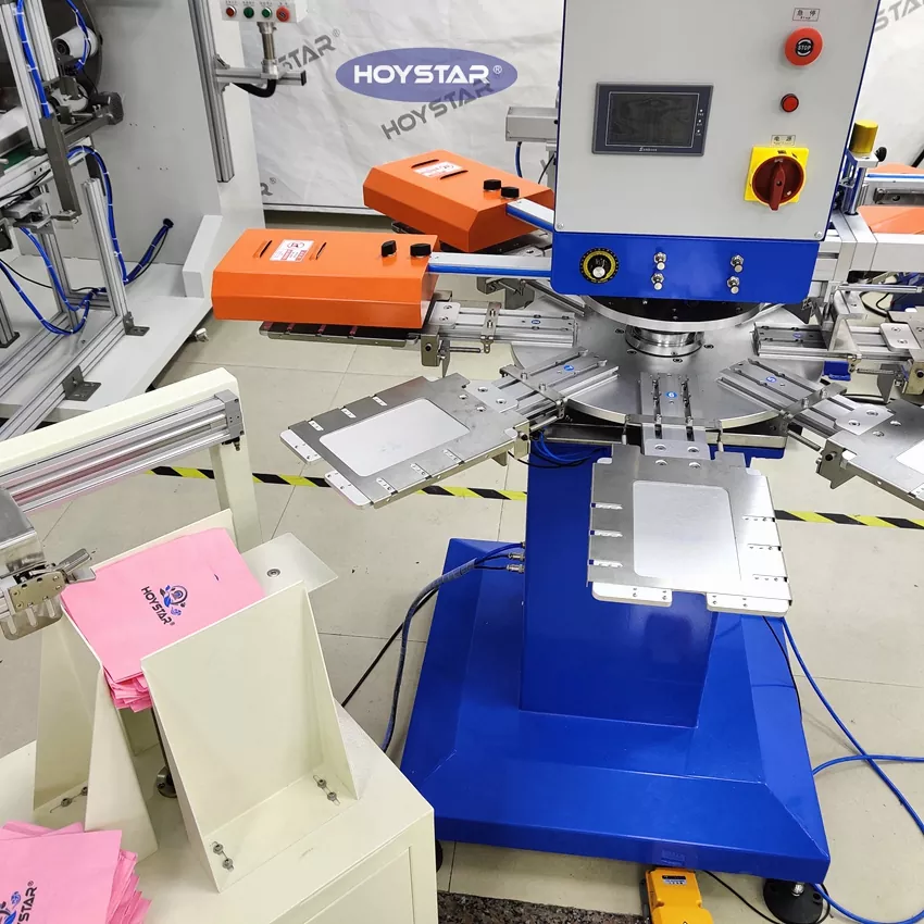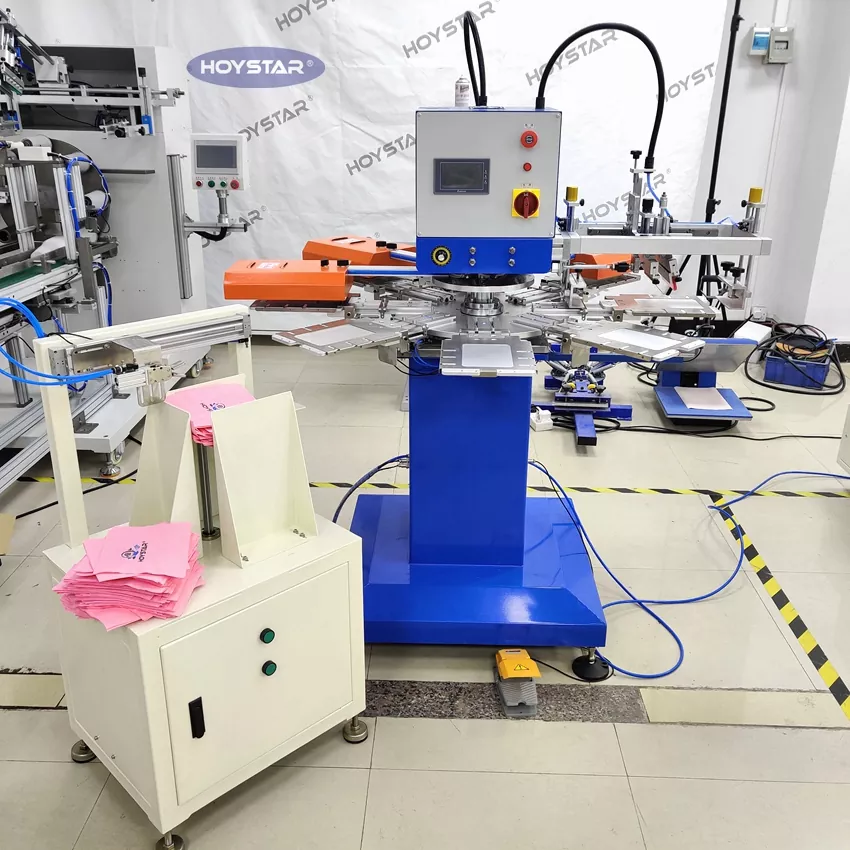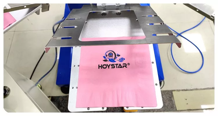 HOYSTAR là nhà sản xuất và nhà cung cấp đáng tin cậy ở Trung Quốc; Máy in lụa khăn ăn 2 màu tự động HOYSTAR này được thiết kế đặc biệt để in hoàn toàn tự động trên khăn ăn. Quy trình in hợp lý của nó diễn ra như sau: nạp khăn ăn vào máy theo cách thủ công—in tự động màu đầu tiên—sấy tự động—in tự động màu thứ hai—sấy tự động—tự động dỡ hàng—và thu thập sản phẩm tự động.