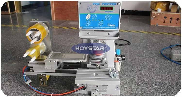 Là nhà sản xuất chuyên nghiệp tại Trung Quốc, chúng tôi muốn cung cấp cho bạn Máy in bảng màu 1 màu HOYSTAR Desktop hiệu suất cao với hệ thống làm sạch tự động. Máy in pad này được trang bị cốc mực kín và hệ thống làm sạch tự động, lý tưởng để in trên nhiều loại vật liệu và sản phẩm. Các ứng dụng của nó bao gồm nhựa, phần cứng, điện tử, đồ chơi, bao bì mỹ phẩm, đồ điện, quà tặng và phí bảo hiểm, nắp chai, văn phòng phẩm, đồ gốm sứ và quảng cáo khuyến mại. Hệ thống làm sạch tự động tích hợp nâng cao đáng kể hiệu quả bằng cách tiết kiệm thời gian và đơn giản hóa hoạt động.