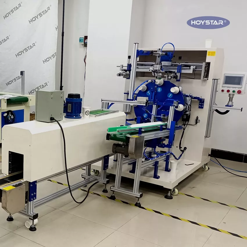 Là nhà sản xuất chuyên nghiệp tại Trung Quốc, chúng tôi muốn cung cấp cho bạn Máy in lụa hình trụ 1 màu hoàn toàn tự động HOYSTAR hiệu quả cao cho cốc PP/PET, giải pháp in lụa hiệu quả cao được thiết kế riêng cho các trường hợp cụ thể - máy in lụa hoàn toàn tự động chuyên dụng của chúng tôi dành cho cốc. Máy này được thiết kế để in trên cốc và có quy trình làm việc hoàn toàn tự động: tự động nạp, tự động in, tự động dỡ và hệ thống sấy IR. Giảm đáng kể chi phí nhân công và cũng giảm thiểu sai sót trong quá trình in, đảm bảo kết quả in ổn định trong sản xuất hàng loạt.