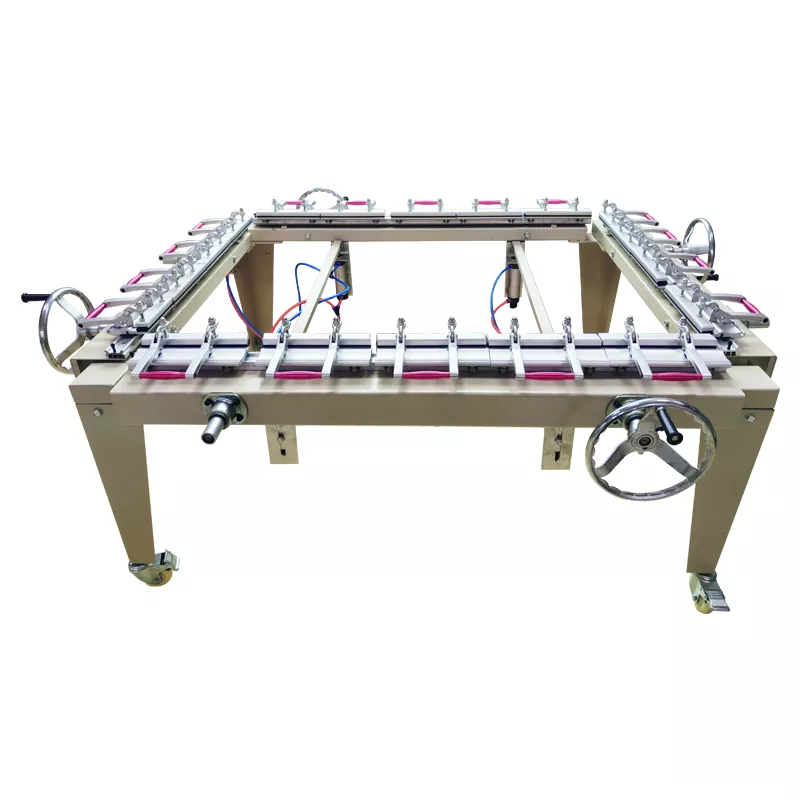 Máy kéo khung màn được sử dụng để căng và căng đều màn hình lên khung nhôm hoặc gỗ, đảm bảo độ căng màn hình ổn định - đây là yếu tố then chốt để đạt được độ in đều mực trong quá trình in.