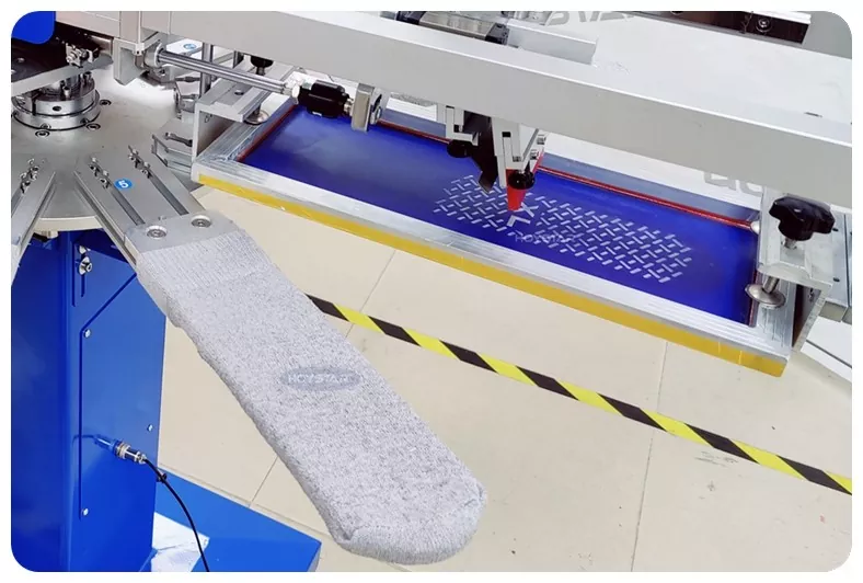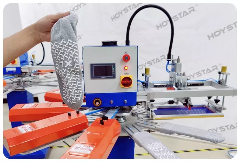 Máy in lụa chống trượt dành cho tất của chúng tôi được thiết kế dành cho các loại tất chống trượt chất lượng cao như tất trẻ em, tất dành cho thú cưng, tất người lớn, tất bóng đá, tất có độ bám. Thích hợp cho các nhà sản xuất chuyên về tất thể thao, y tế, trẻ em và yoga để mua để in.