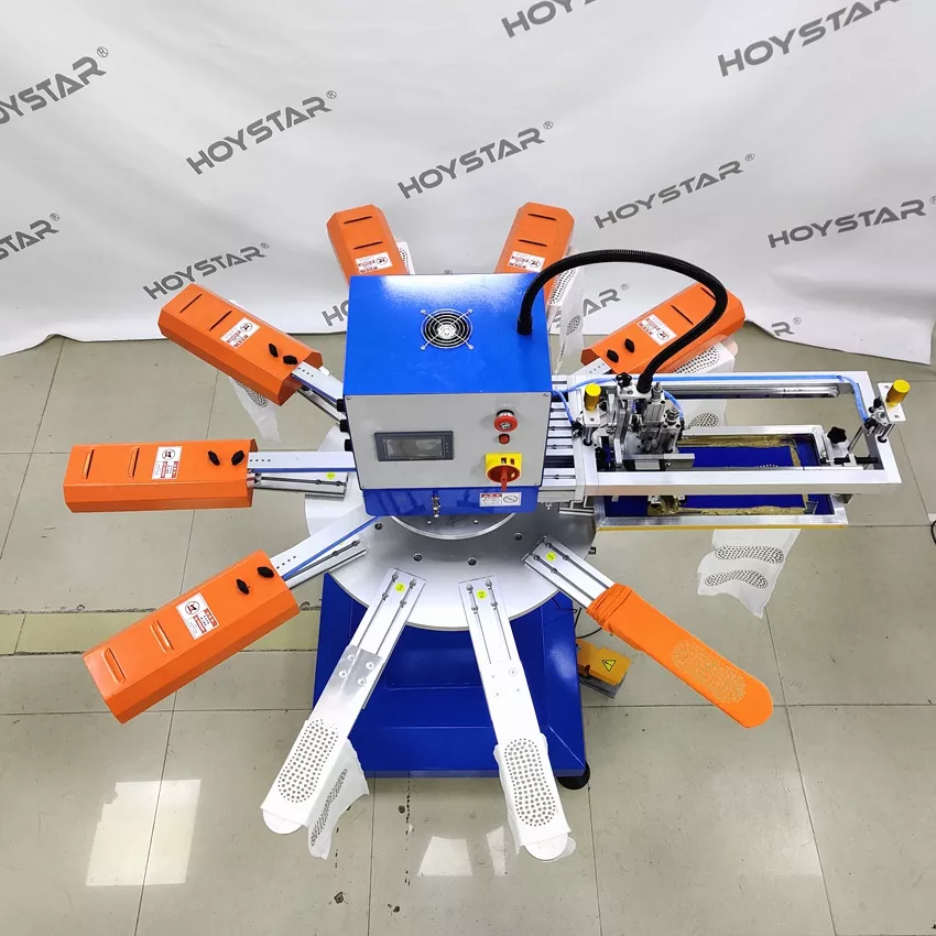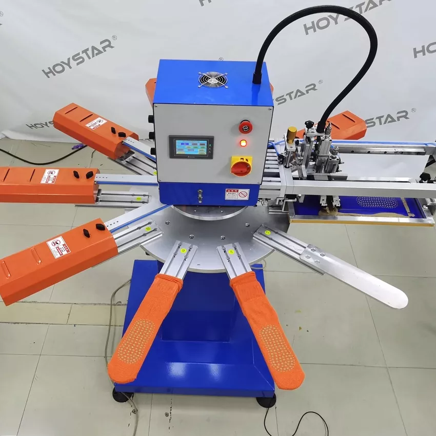 Là nhà sản xuất và cung cấp chuyên nghiệp, Máy in lụa nhanh cho tất HOYSTAR được thiết kế cho các ứng dụng trong ngành dệt kim. Với tốc độ lên tới 1000 CÁI / Hr, nó phù hợp để in tất chống trượt, tất trẻ em, tất người lớn, tất bóng đá, v.v. Được trang bị bàn làm việc quay nên rất thuận tiện khi xếp và dỡ tất. Điều khiển màn hình cảm ứng PLC, rất dễ vận hành. Máy được trang bị hệ thống sấy có thể làm khô silicon và mực in tốt.