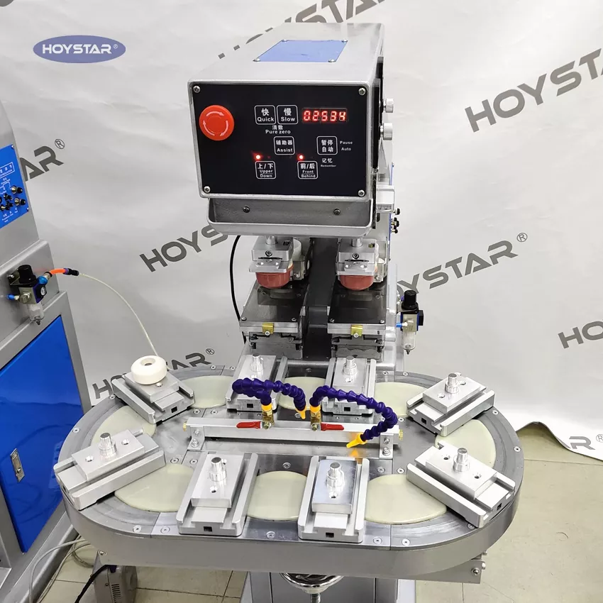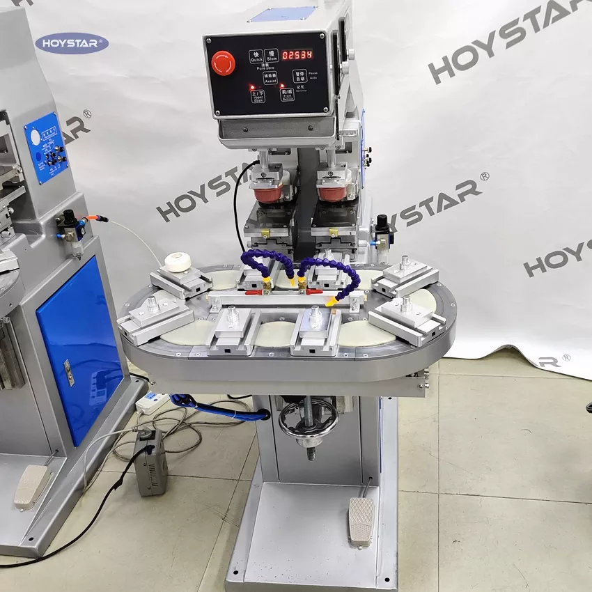 Là nhà sản xuất chuyên nghiệp tại Trung Quốc, chúng tôi muốn cung cấp cho bạn Máy in bảng xoay hai màu HOYSTAR hiệu quả cao. Máy này cho phép in hai bảng màu liên tục cho sản phẩm, với một lần đăng ký màu được hoàn thành trong một chu kỳ. So với máy in pad loại con thoi, tốc độ của nó rất nhanh. Thích hợp để in trên nhiều loại mặt hàng, bao gồm các sản phẩm điện tử, vỏ nhựa, sản phẩm phần cứng, văn phòng phẩm và logo trên bề mặt đồ thủ công mỹ nghệ nhỏ, có thể đáp ứng hai nhu cầu in màu của bạn.